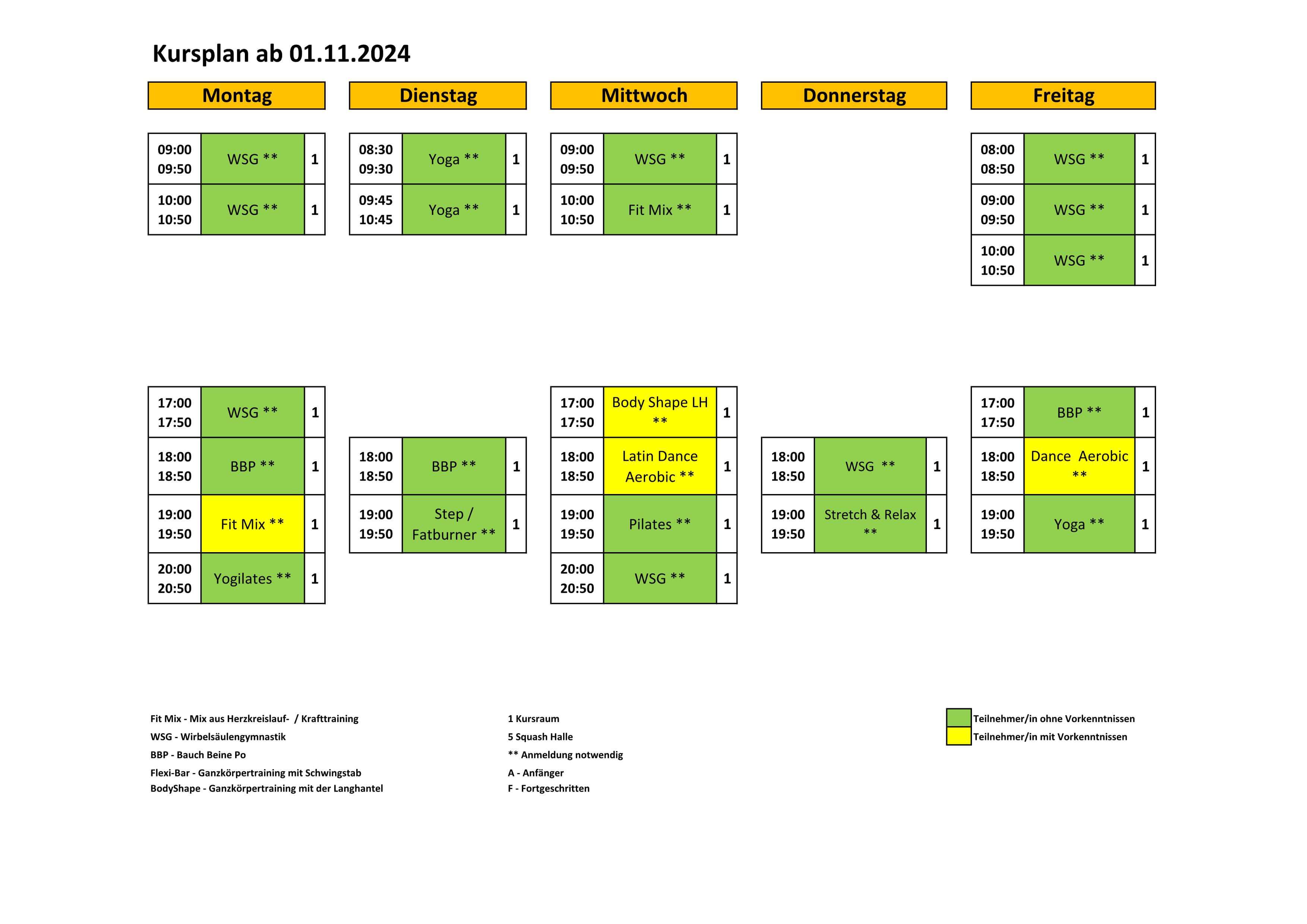 Kursplan ab 04.11.2024